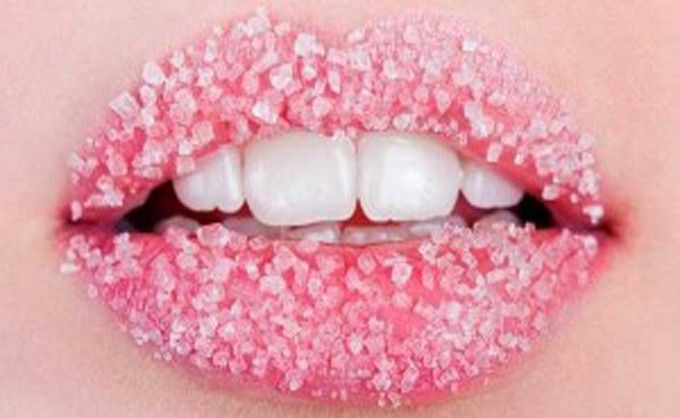 ៤-ត្រដុសបបូរមាត់ជាមួយនឹងស្ករស ដើម្បីខាត់ស្បែកបបូរមាត់ជំរុះស្បែកចាស់ៗចោល អោយមានពណ៌ក្រហមស៊ីជំពូរស្រស់ធម្មជាតិ។