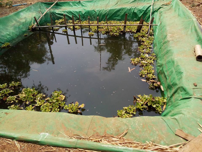–ដាក់ក្រាលប្រភេទផ្ទាំងប្លាស្ទិចដែលមាំស្វិតល្អនិងដាក់ដីឬដំុំថ្មគ្របសង្កត់ពីលើជាយផ្ទាំងប្លាស្ទិចនៅមាត់ស្រះផងដើម្បីកុំអោយថង់រអិលចូលក្នុងស្រះ។