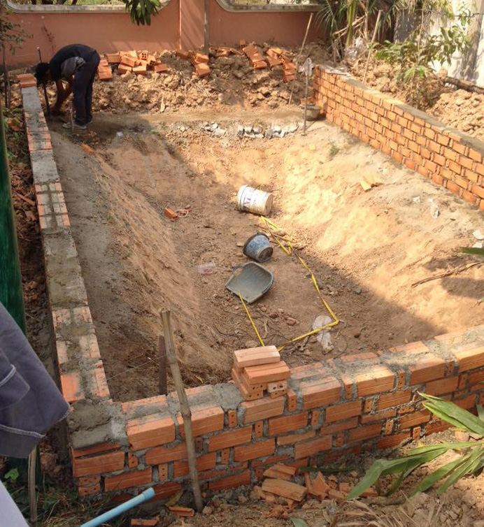 –ជីកជម្រៅចុះក្រោមប្រមាណ១ម៉ែត្រនិងត្រូវមានជើងទេនៅតាមមាត់ស្រះប្រមាណ៤៥ដឺក្រេបាតស្រះត្រូវរៀបចំឲ្យបានស្មើរល្អ។