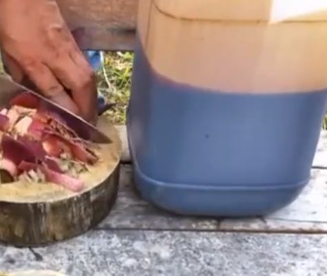 ២.វិធីធ្វើ៖ ចិតត្រយោងចេកជាចំនិតតូចៗ (បើបុកកាន់តែល្អ) រួចដាក់ត្រយោងចេកដែលចិតរួចទាំងនោះក្នុងធុង ហើយចាក់កាកស្ករចូលក្នុងធុង