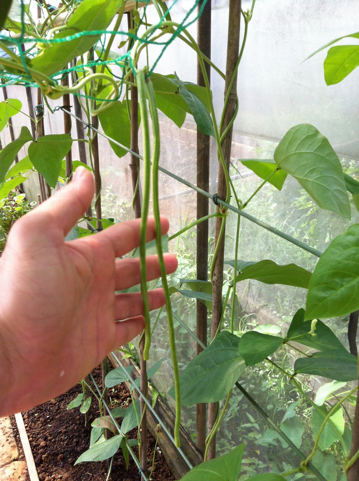 -យកកំណាត់ឫស្សី ប្រវែង ២ម៉ែត្រ ទៅ ២,៥ម៉ែត្រ ដោតឈមទល់មុខគ្នា នៅនឹងដីផ្ទាល់ពីលើផើងដំណាំ នៅពេលកូនសណ្តែកមានស្លឹក ៤ ទៅ ៥សន្លឹក និងមានកម្ពស់ ១៥ ទៅ ២០ សង់ទីម៉ែត្រ