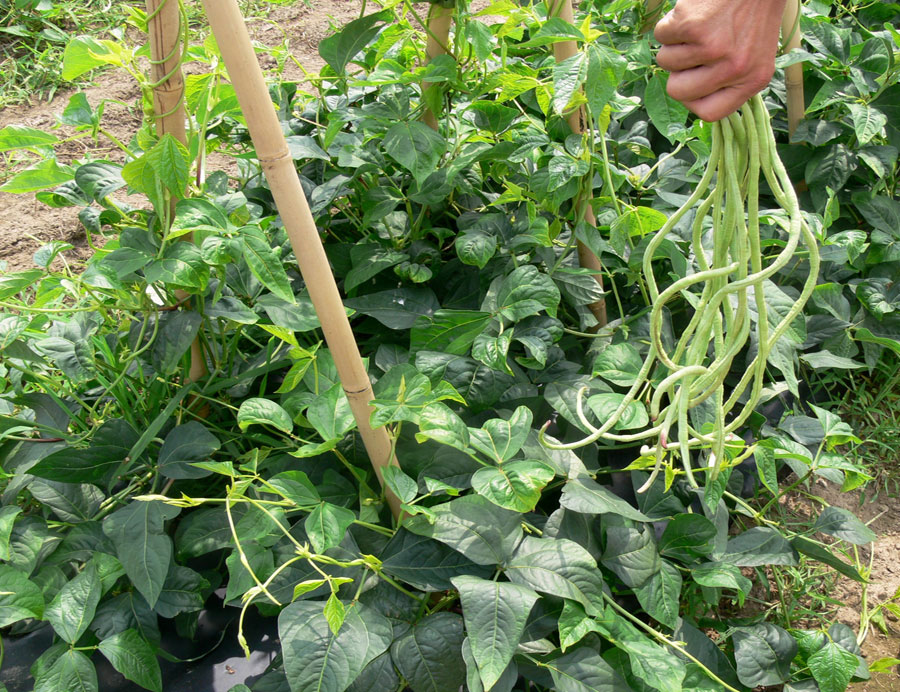 -រៀបចំកំណាត់ឫស្សី ដើម្បីធ្វើជារង ឱ្យសណ្តែកអាចវាតោងឡើងបាន