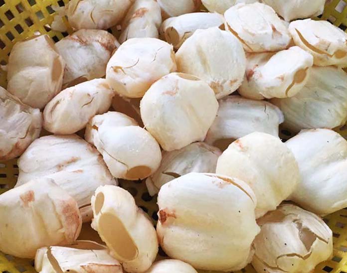១.ចិតសំបកគ្រាប់ឲ្យស្អាត រួចយកលាងទឹក ហើយចិតជាដុំតូចៗល្មម តាមចំណូលចិត្ត
