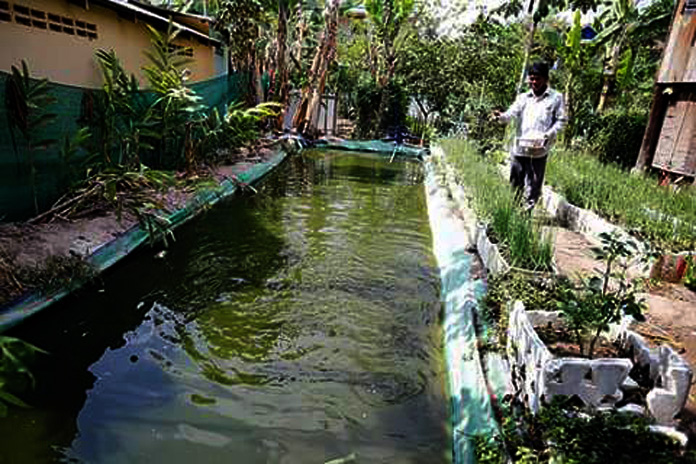 ដាក់ទឹកចូលកម្ពស់២/៣ នៃស្រះ។