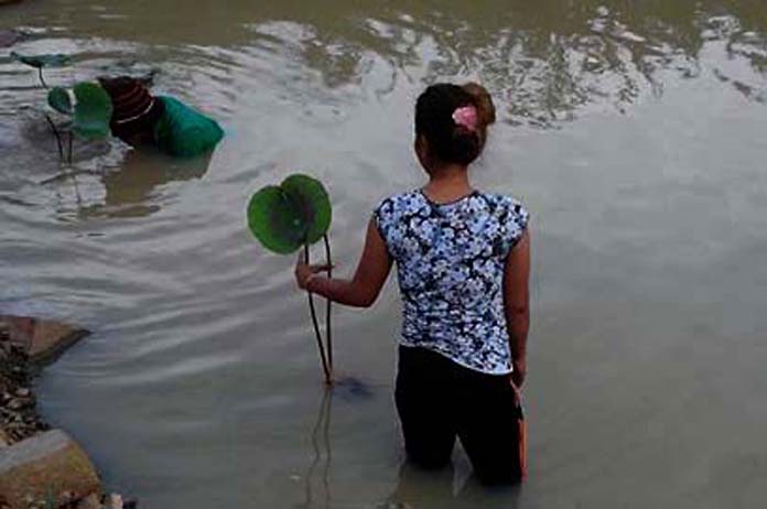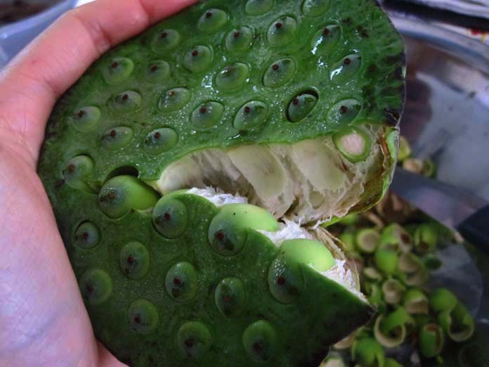 ៣-ការដាំដុះ៖យកកូនឈូកដែលត្រូងដាំចុចគល់អោយកប់ទៅក្នុងដីកុំអោយអណ្តែតគល់ហើយស្លឹកឈូកត្រូវផ្ងារឡើងលើជៀសវាងរលួយស្លឹក។