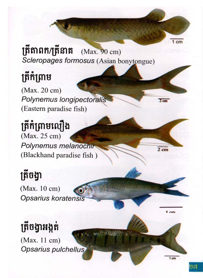 បងប្អូនប្រហែលជាមិនស្គាល់ប្រភេទត្រីទឹកសាបទាំងអស់ទេនៅកម្ពុជា អ្នកខ្លះក៏ស្គាល់ហើយឈ្មោះត្រីខ្លះបងប្អូននៅតាមខេត្តខ្លះក៏ហៅផ្សេងគ្នាដែរ។ ខាងក្រោមនេះប្រភេទត្រីទឹកសាបប្រមាណជិត៣០០ប្រភេទ។(មាន27ទំព័រ)៖