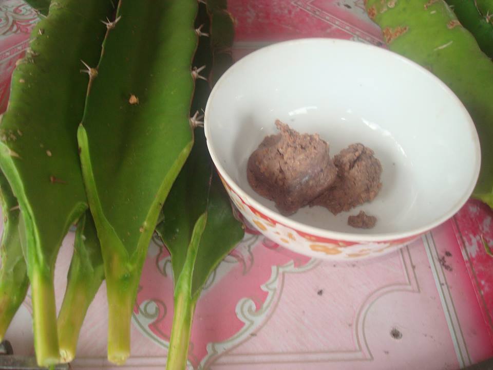 ៣.ចិតសាច់ ទ្រនុងទាំងបីជ្រុងចេញ ទុកតែបណ្តូលសណ្ឋានដូចឈើប្រវែង ៤ ស.ម