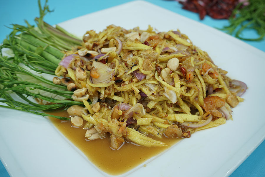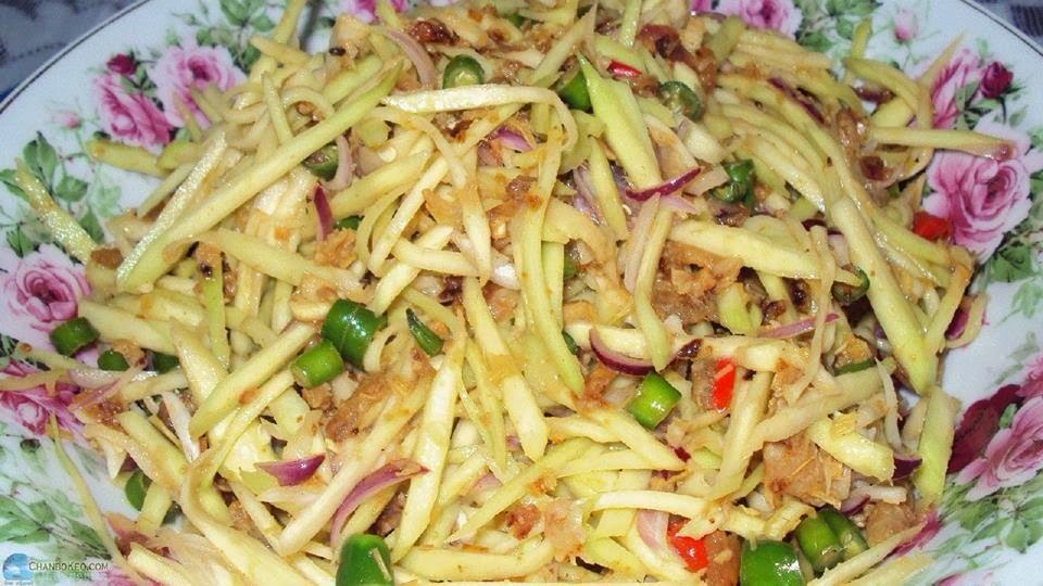 របៀបបុកស្វាយត្រីងៀត ឆ្ងាញ់+គ្រឿងផ្សំ៖-ត្រីងៀតអាំងឬចៀនបេះតូចៗយកឆ្អឹងចេញ -ស្វាយជូសាប់ស្តើងៗ -ខ្ទឹមក្រហមហាន់ស្តើងៗ-ខ្ទឹមស