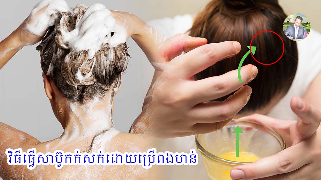 +គ្រឿងផ្សំ -ពងមាន់ ១គ្រាប់-ប្រេងអូលីវ កន្លះស្លាបព្រាកាហ្វេ-ទឹកក្រូចឆ្មារ កន្លះស្លាបព្រាកាហ្វេ-ទឹកស្អាត កន្លះពែង-សាប៊ូកក់សក់រូបមន្តស្រាល...