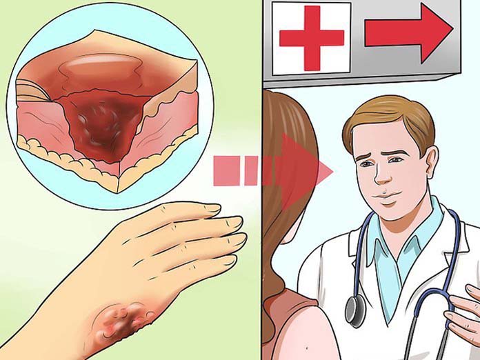-ស្នាមរលាកមានមុខធំ ឈឺចាប់ខ្លាំង រលាកហើមប៉ោង ឬ ពងខ្លាំង។