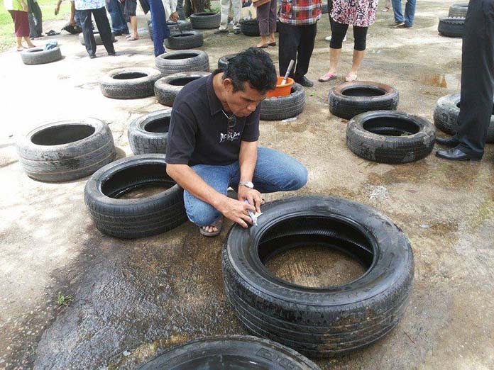 សូមពិនិត្យមើលរូបភាពខាងក្រោមដែលយើងអាចយកសំបកកង់ឡានចាស់ៗមកច្នៃសម្រាប់ដាំត្រកួនដែលបងប្អូនអាចសាលល្បងបាន៖