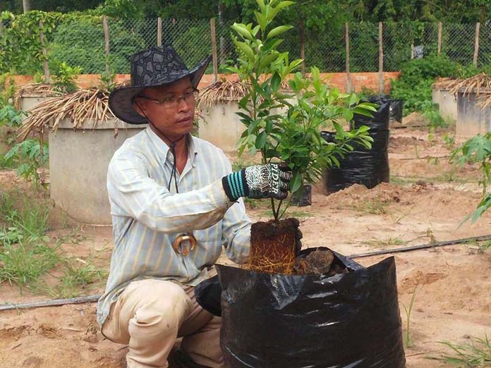 ជ្រើសរើសកូនពូជល្អដែលគេផ្សាំរួចយកមកដាំដាក់ដាំកូនត្រូវឲ្យដីនៅត្រឹមគល់របស់វា