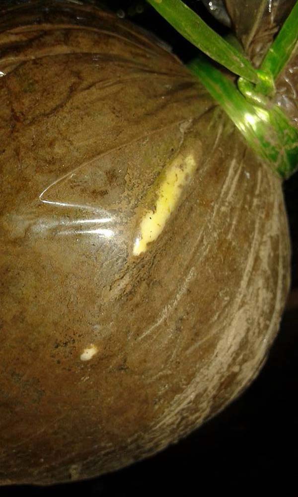 -ចងរុំប្លាស្ទិកឲ្យណែន ឬប្រើស្រកីដូង យកល្អប្រើស្រកីដូងធ្វើជាឧបករណ៍រុំចងមុខបំបៅ ព្រោះវាងាយជក់ទឹក ជាងស្បោងប្លាស្ទិក។